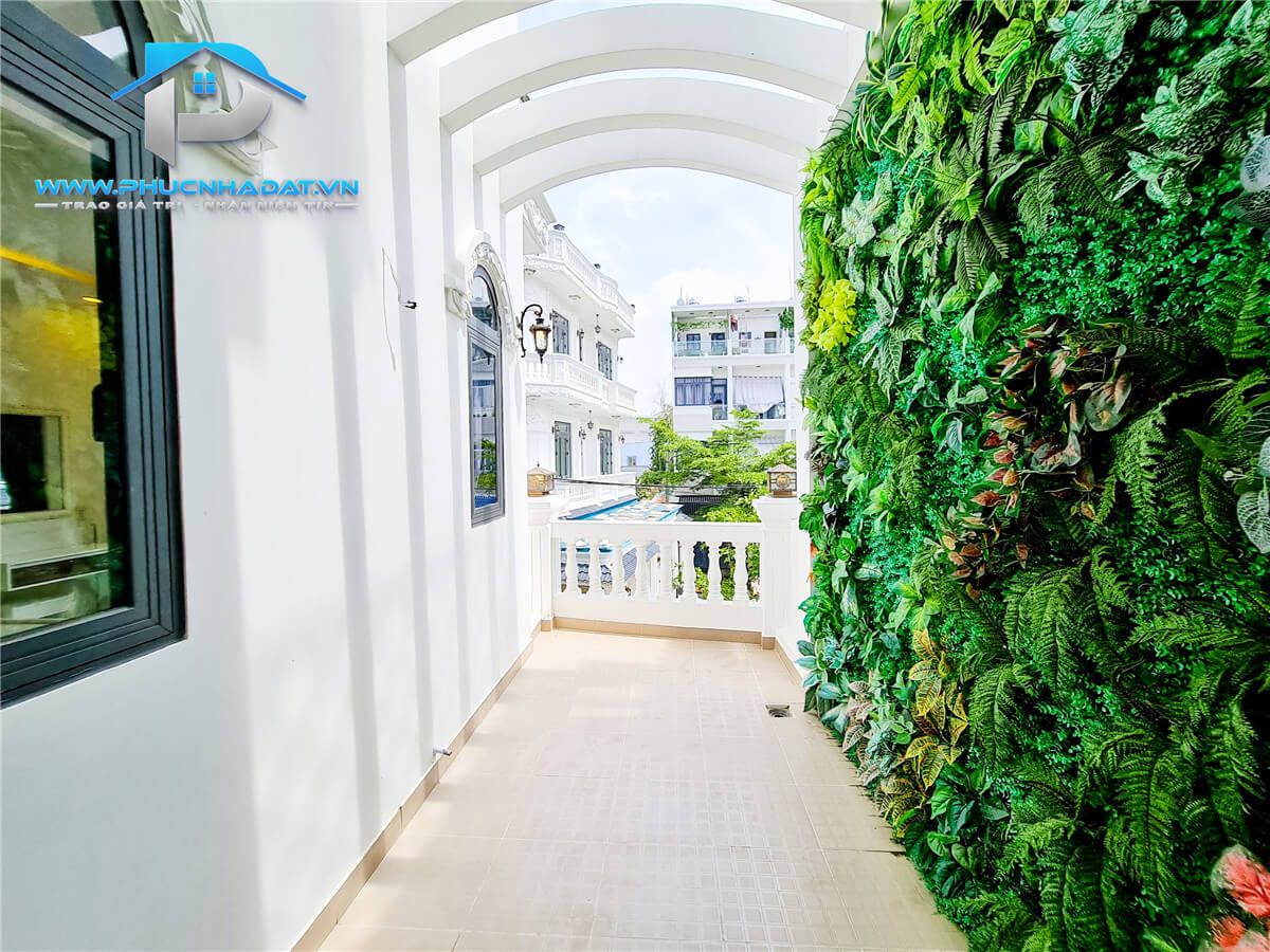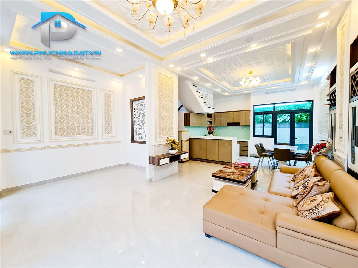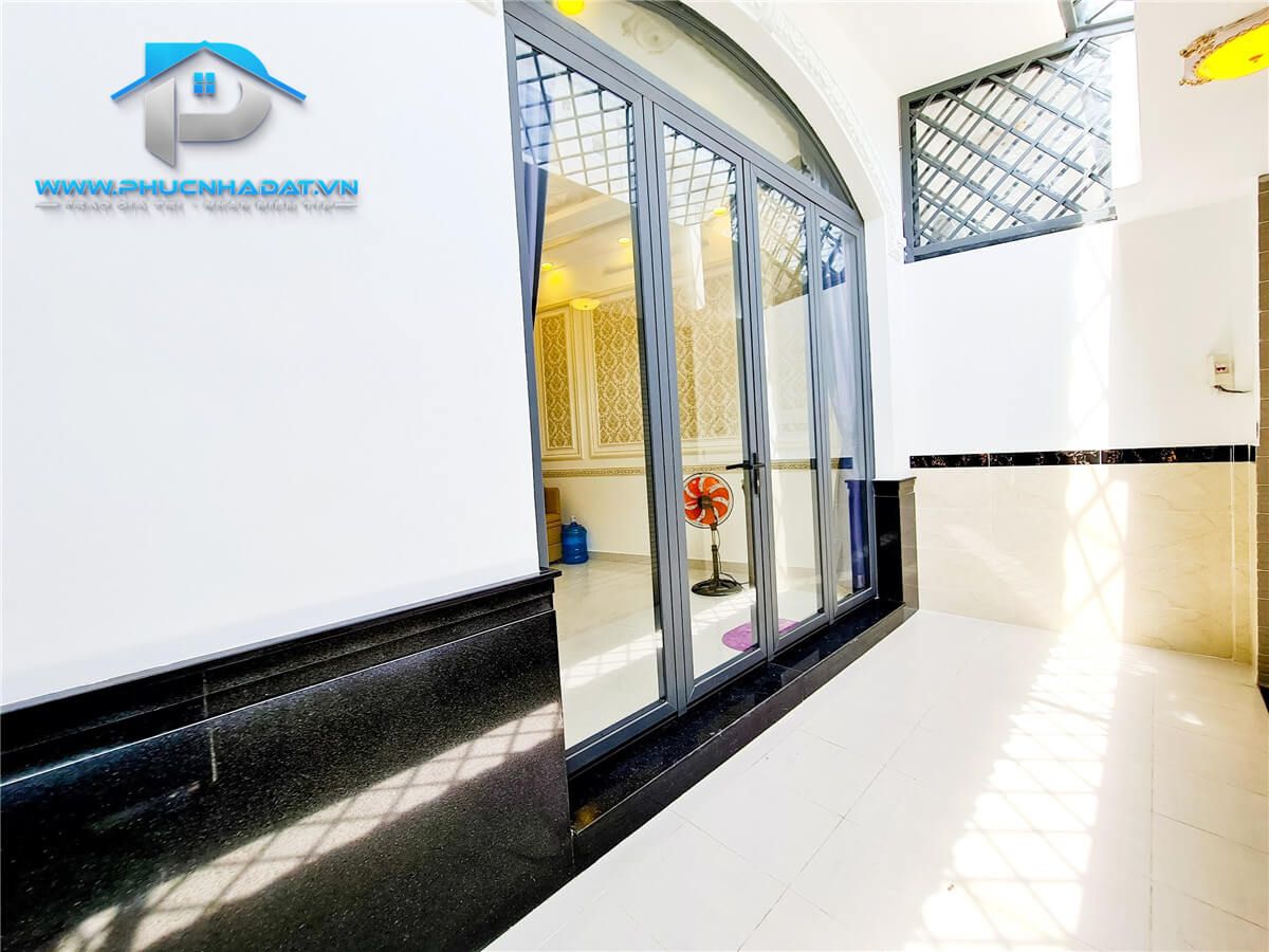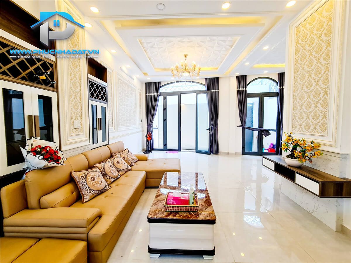 – Kết Cấu : diện tích 6x14m 1 trệt 2 lầu sân thượng chuồng cu , 4 phòng full nội thất, phòng thờ + phòng giặt, 5 toilets . Sân xung quanh nhà thoáng mát, đậu xe hơi. Sân thượng rộng rãi phù hợp trồng cây xanh, làm sân vườn. Nhà trang bị nội thất gỗ full các phòng , tủ bếp An Cường ,... xách vali vào ở ngay.